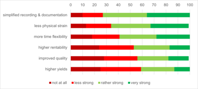 When asked about their general opinion about the growing importance of automatized machinery and digital tools nearly 90% of respondents indicated a neutral or rather positive attitude, while only 11% showed to be sceptical or even negative towards digital farming. Summed up this can be described by the following farmers quote “As long I benefit more of these technologies than I have to pay for them I will be open for it.” How can this be better described than “a quite pragmatic-positive approach”.